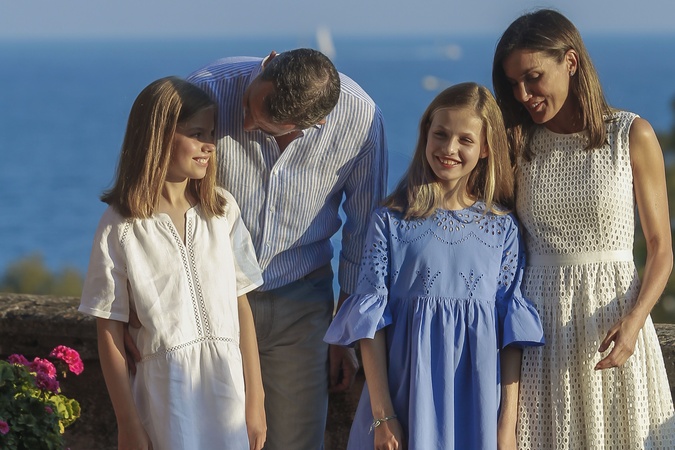Krolowa Letizia i krol Filip z corkami pozuja do zdjec