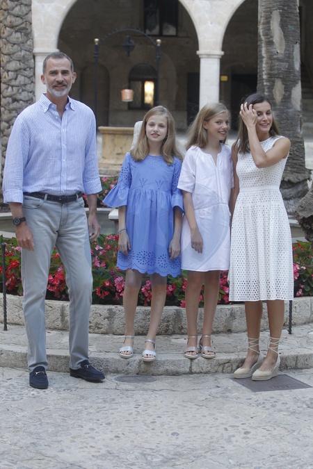 Krolowa Letizia i krol Filip z corkami pozuja do zdjec