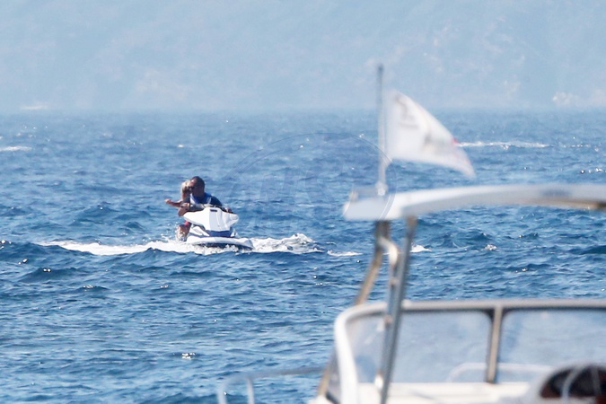 Brigitte Macron ze swoim ochroniarzem na skuterze wodnym