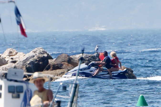 Brigitte Macron ze swoim ochroniarzem na skuterze wodnym