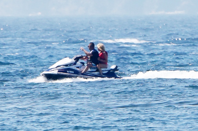 Brigitte Macron ze swoim ochroniarzem na skuterze wodnym