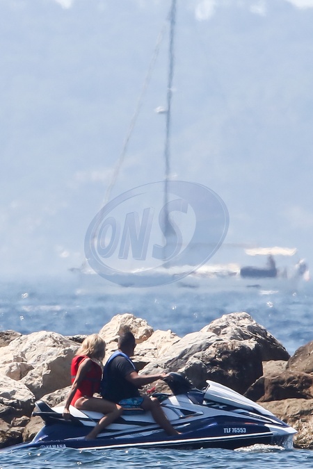 Brigitte Macron ze swoim ochroniarzem na skuterze wodnym