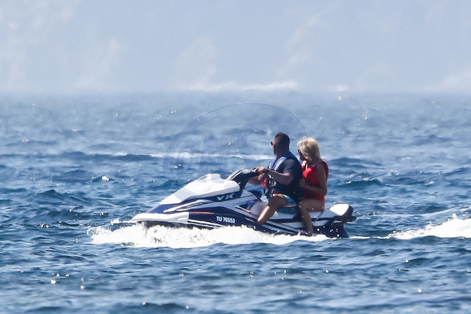 Brigitte Macron ze swoim ochroniarzem na skuterze wodnym