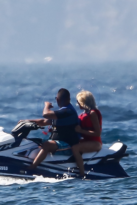 Brigitte Macron ze swoim ochroniarzem na skuterze wodnym