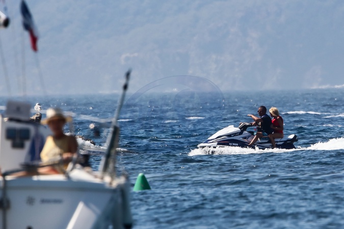 Brigitte Macron ze swoim ochroniarzem na skuterze wodnym