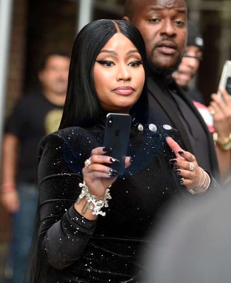 Nicki Minaj w czerni w The Late Show with Stephen Colbert