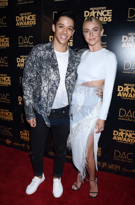 Julianne Hough w bialej sukience z rozcieciem i fredzlami na Industry Dance Awards