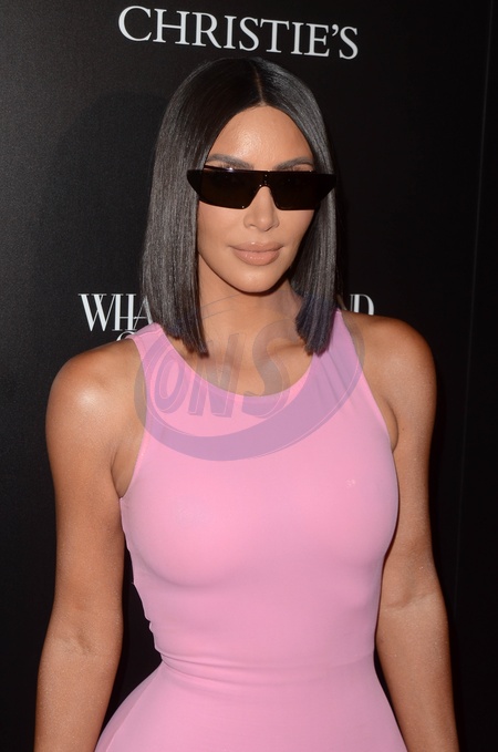 Kim Kardashian w rozowej opietej mini i z torebka w ksztalcie frytek