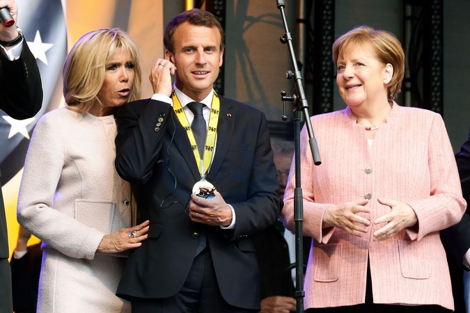 Emmanuel Macron, Brigitte Macron, Angela Merkel