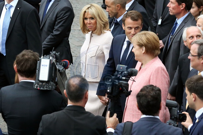 Emmanuel Macron, Brigitte Macron, Angela Merkel