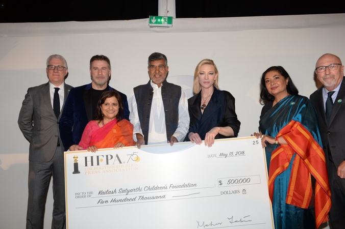 David Linde, John Travolta, Kailash Satyarthi, Sumedha Satyarthi, Kelly Preston, Meher Tatna, Lorenzo Soria l