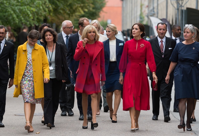 Brigitte Macron i ksiezna Mary - zwiedzaja Danie - obie w czerwieni