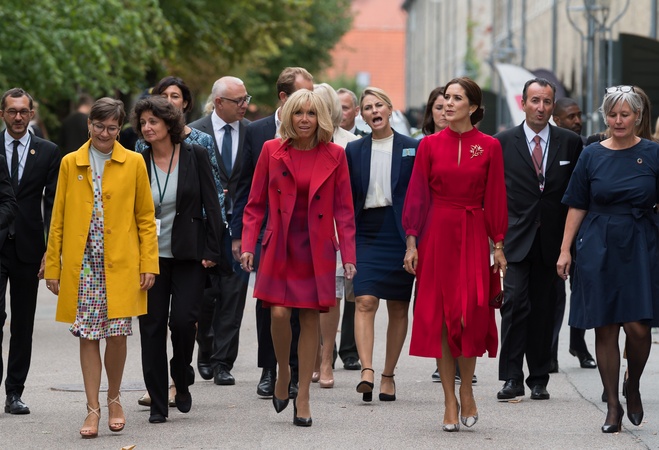Brigitte Macron i ksiezna Mary - zwiedzaja Danie - obie w czerwieni