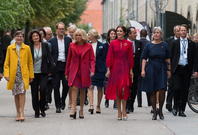 Brigitte Macron i ksiezna Mary - zwiedzaja Danie - obie w czerwieni