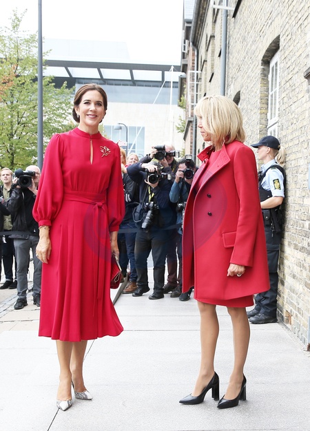 Brigitte Macron i ksiezna Mary - zwiedzaja Danie - obie w czerwieni