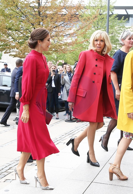 Brigitte Macron i ksiezna Mary - zwiedzaja Danie - obie w czerwieni