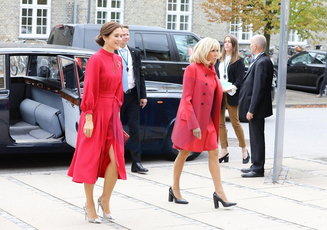 Brigitte Macron i ksiezna Mary - zwiedzaja Danie - obie w czerwieni