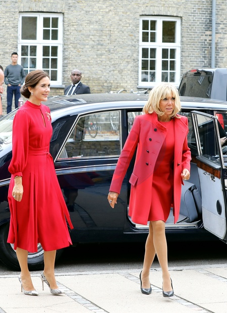 Brigitte Macron i ksiezna Mary - zwiedzaja Danie - obie w czerwieni