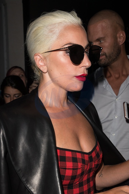 Lady Gaga w sukience w czerwona kratke w Paryzu