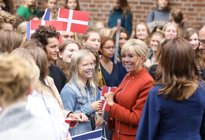Brigitte Macron i ksiezna Maria - Mary odwiedzily liceum w Kopenhadze