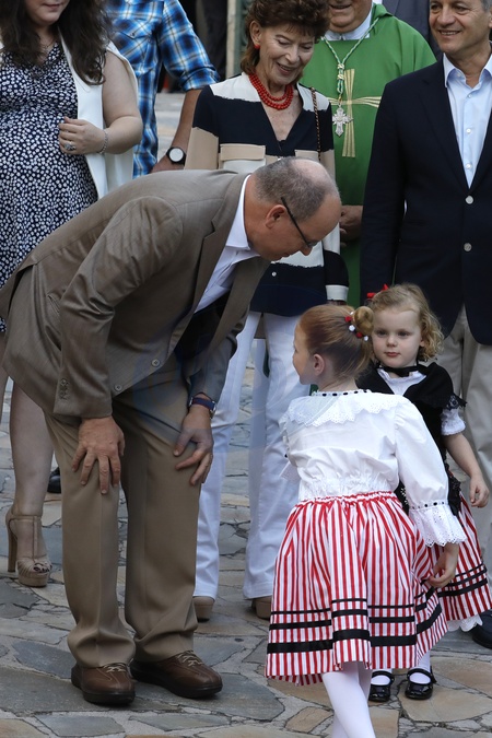 Ksiaze Albert z zona i dziecmi na tradycyjnym, monakijskim pikniku
