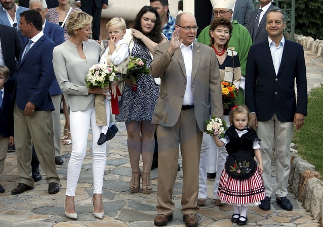 Ksiaze Albert, ksiezna Charlene z dziecmi ksiezniczka Gabriella, ksiaze Jacques
