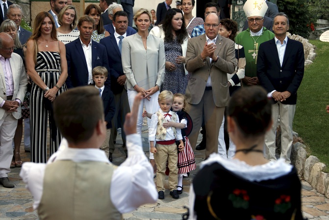Ksiaze Albert, ksiezna Charlene z dziecmi ksiezniczka Gabriella, ksiaze Jacques