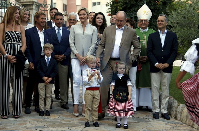 Ksiaze Albert, ksiezna Charlene z dziecmi ksiezniczka Gabriella, ksiaze Jacques