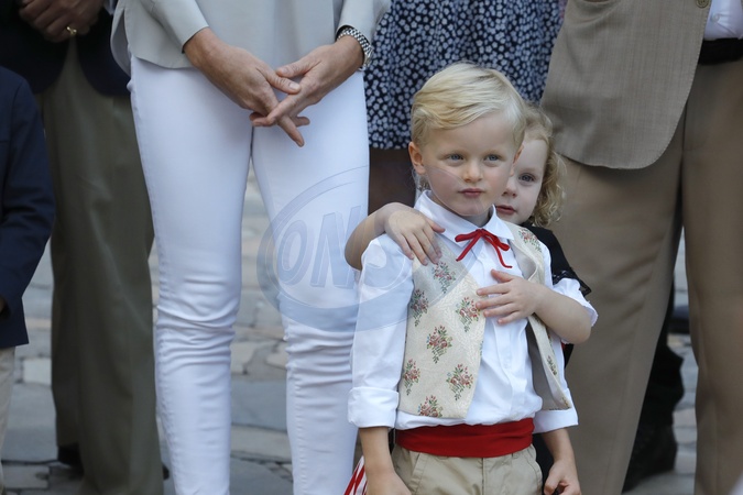 Ksiaze Albert z zona i dziecmi na tradycyjnym, monakijskim pikniku