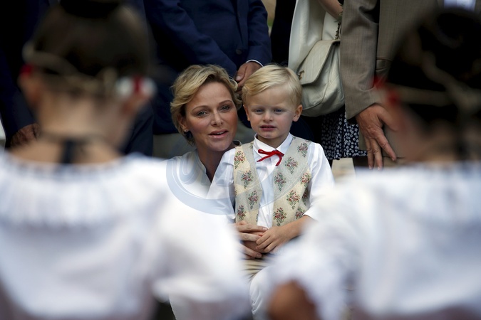 Ksiaze Albert z zona i dziecmi na tradycyjnym, monakijskim pikniku