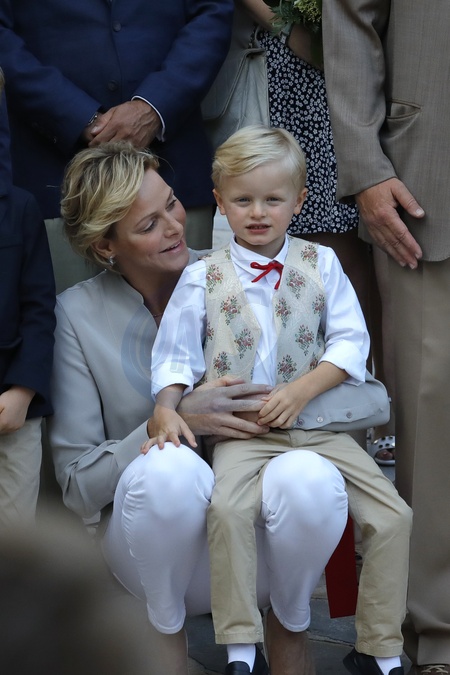 Ksiaze Albert z zona i dziecmi na tradycyjnym, monakijskim pikniku