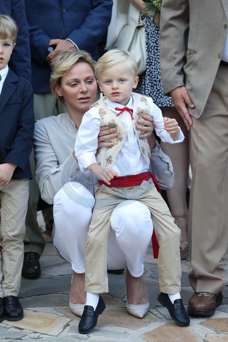 Ksiaze Albert z zona i dziecmi na tradycyjnym, monakijskim pikniku