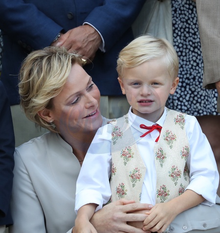 Ksiaze Albert z zona i dziecmi na tradycyjnym, monakijskim pikniku