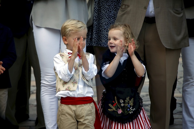 Ksiaze Albert z zona i dziecmi na tradycyjnym, monakijskim pikniku