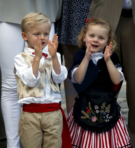 Ksiaze Albert z zona i dziecmi na tradycyjnym, monakijskim pikniku