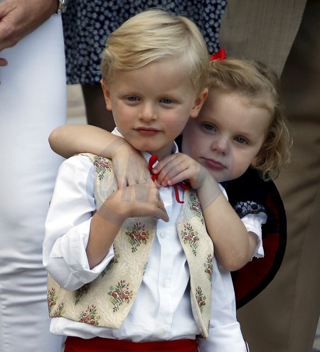 Ksiaze Albert z zona i dziecmi na tradycyjnym, monakijskim pikniku