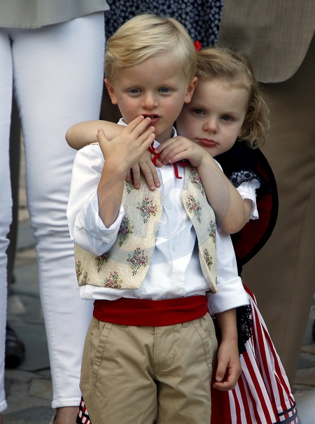 Ksiaze Albert z zona i dziecmi na tradycyjnym, monakijskim pikniku