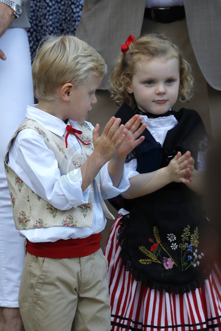 Ksiaze Albert z zona i dziecmi na tradycyjnym, monakijskim pikniku