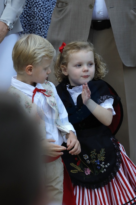 Ksiaze Albert z zona i dziecmi na tradycyjnym, monakijskim pikniku