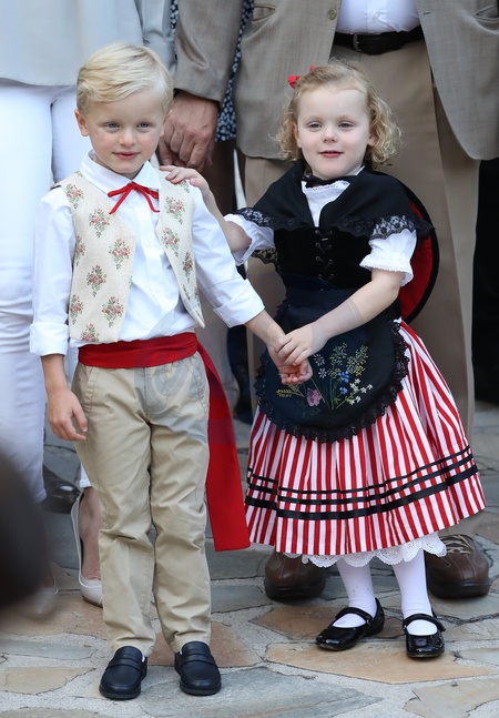 Ksiaze Albert z zona i dziecmi na tradycyjnym, monakijskim pikniku