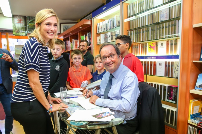 Francois Hollande i Julie Gayet na promocji ksiazki The lessons of power
