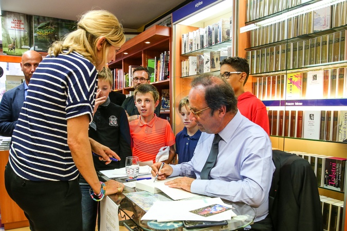 Francois Hollande i Julie Gayet na promocji ksiazki The lessons of power