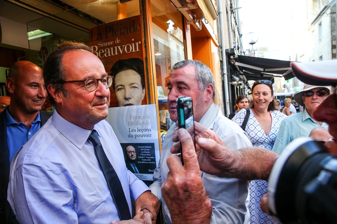 Francois Hollande i Julie Gayet na promocji ksiazki The lessons of power