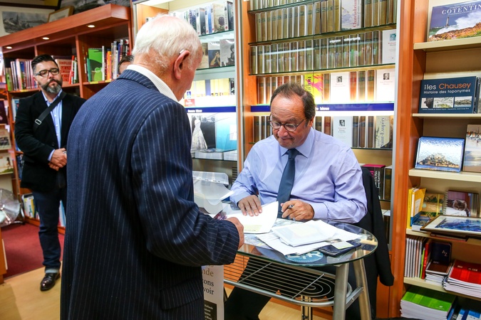 Francois Hollande i Julie Gayet na promocji ksiazki The lessons of power