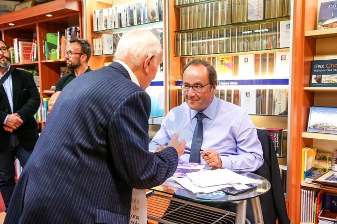 Francois Hollande i Julie Gayet na promocji ksiazki The lessons of power