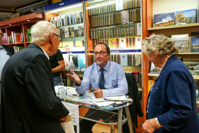 Francois Hollande i Julie Gayet na promocji ksiazki The lessons of power