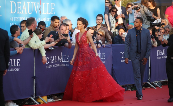 Kate Beckinsale w czerwonej sukni na Festiwalu w Deauville