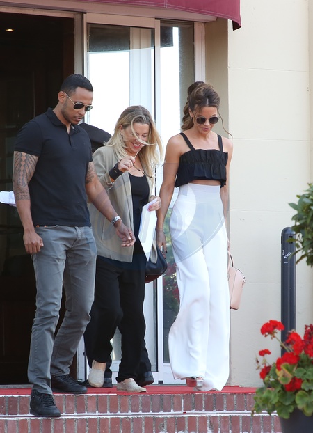 Kate Beckinsale w bialych spodniach i czarnym topie na Festiwalu w Deauville