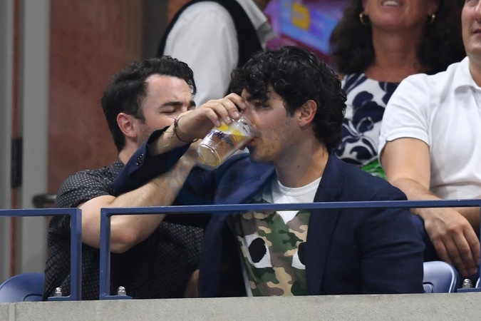Bracia Jonas z piwkiem na trybunach US Open