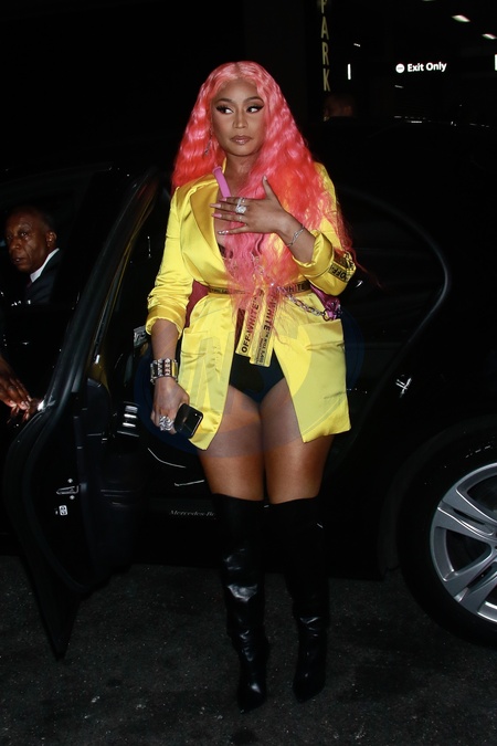 Nicki Minaj w zoltym szlafroczku i w rozowych wlosach